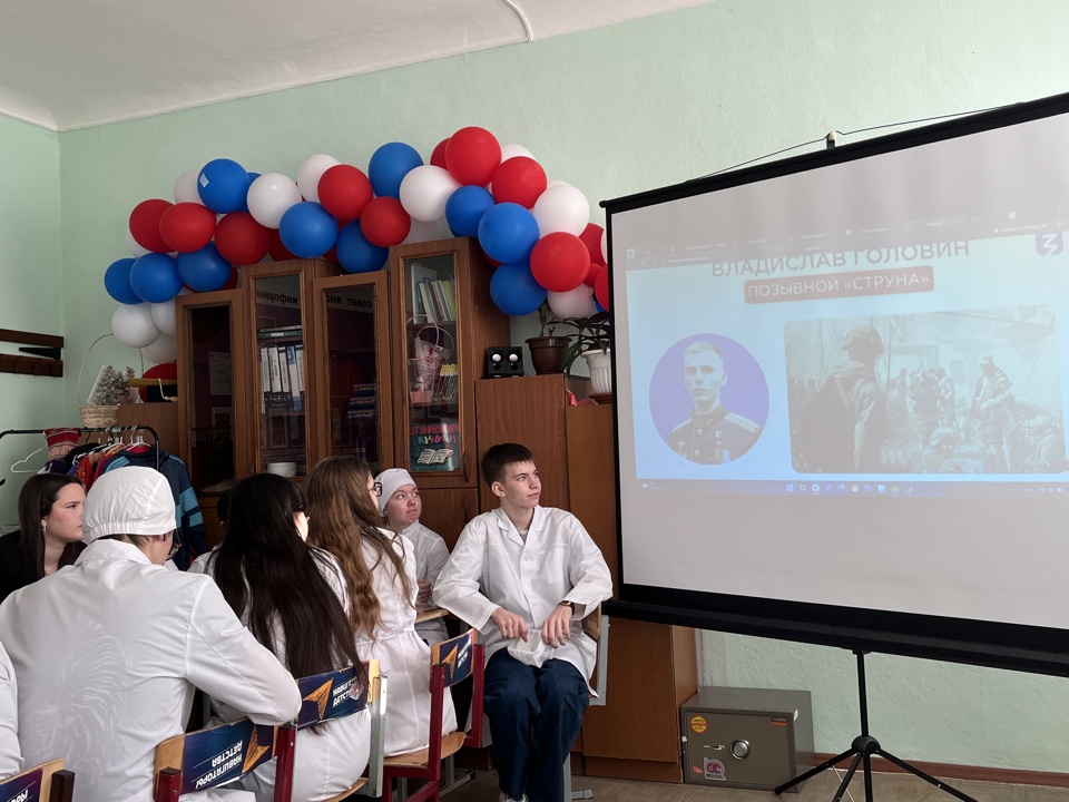 Мероприятие стало пространством для размышлений, диалога и патриотического самовыражения. Студенты с интересом включились в обсуждение, делились своими мыслями, вспоминали имена земляков-героев и тех, кто сегодня с честью защищает Родину.