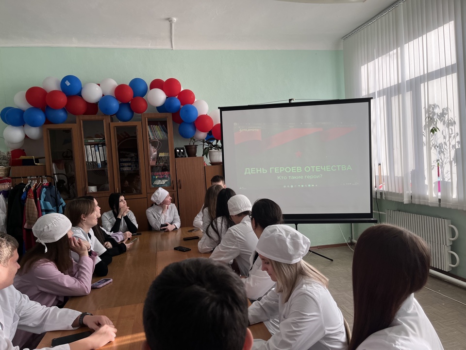 Для студентов нашего колледжа был проведён тематический классный час «Кто такие герои?», на котором участники не только узнали о подвигах прошлых и нынешних поколений, но и вместе задумались: что значит быть героем в современном мире?