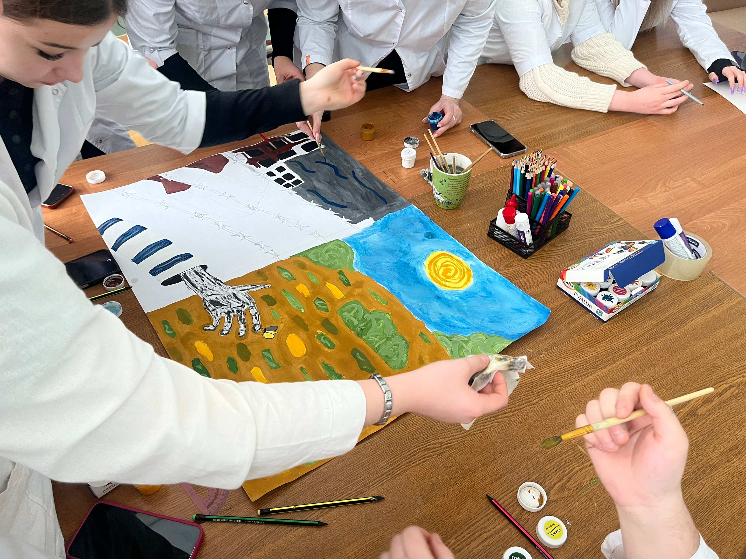 А завершили встречу творчески: ребята с душой создали плакаты, наполненные символами скорби, надежды и призывом к миру.